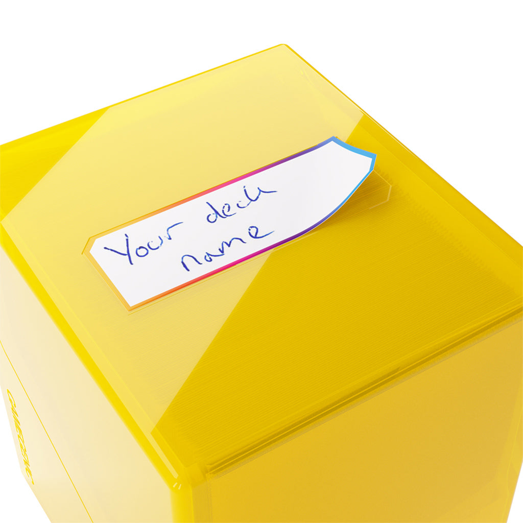 The Bastion 100+ XL is a very compact and rock-solid deck box to safely protect up to 100 double-sleeved cards in Thick Inner Sleeves. It also holds Mini Snap and Slide Card Cases as well as Cube Pockets. Due to translucent materials and smart positioning of the closing flaps, the top or Commander card is fully visible from the outside without opening the box.