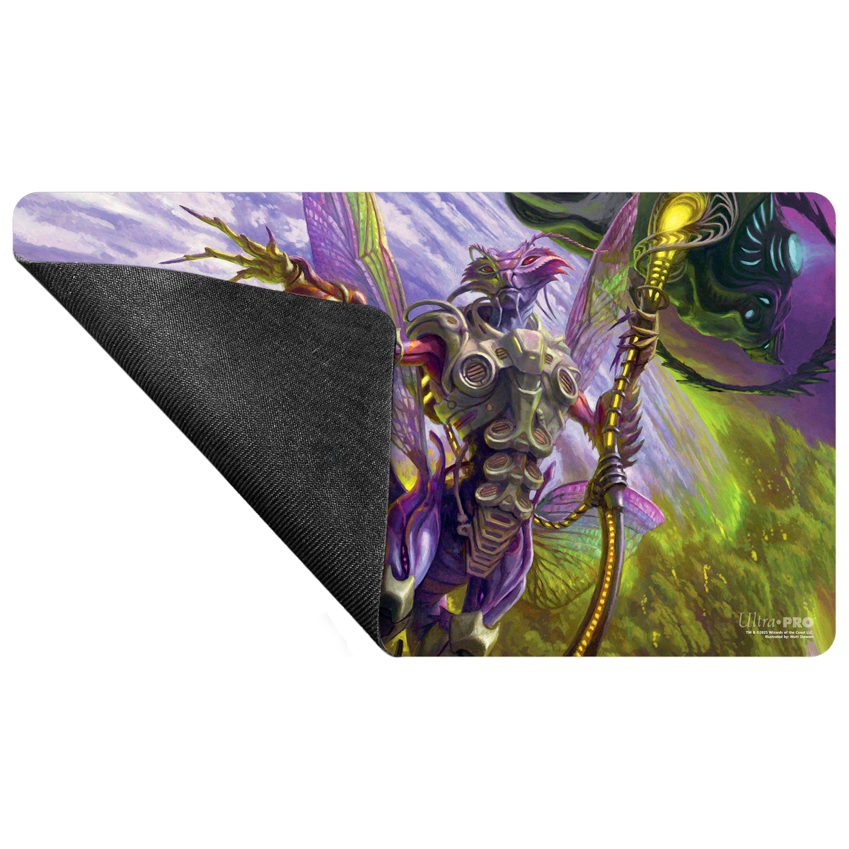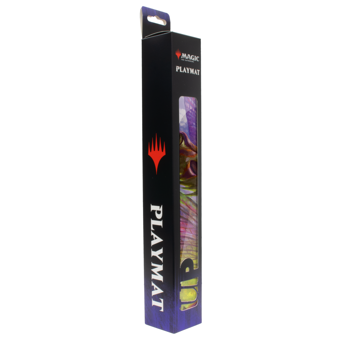 Playmats featuring popular Magic: The Gathering artwork. Made with a soft fabric top to reduce damage to cards during play and a non-slip rubber backing to keep the playmat from shifting during use, playmats enhance the gameplay experience. With dimensions of approximately 24 in. x 13.5 in., a playmat also makes an excellent oversize mousepad for home or office.