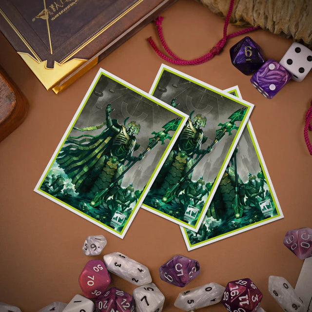 “In the grim darkness of the far future there is only war”, so prepare for battle with tabletop accessories for Warhammer 40,000! These 105ct APEX™ DECK PROTECTOR® Sleeves are made with our new easy-shuffle formulation and feature vibrant, textured cover artwork from the 10th Edition Necron Codex. Archival-safe polypropylene materials ensure you can sleeve your cards with confidence, and the gloss clear front allows your foil cards to shine! Sized for standard size trading cards measuring 2.5 in. x 3.5 in.