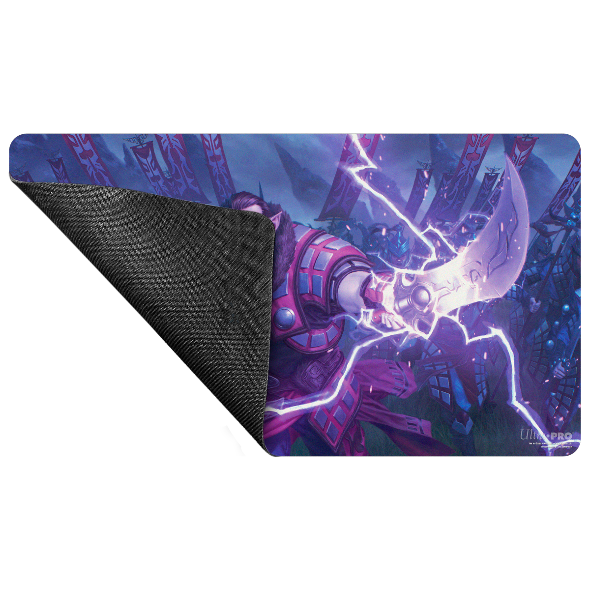 Playmats featuring popular Magic: The Gathering artwork. Made with a soft fabric top to reduce damage to cards during play and a non-slip rubber backing to keep the playmat from shifting during use, playmats enhance the gameplay experience. With dimensions of approximately 24 in. x 13.5 in., a playmat also makes an excellent oversize mousepad for home or office.