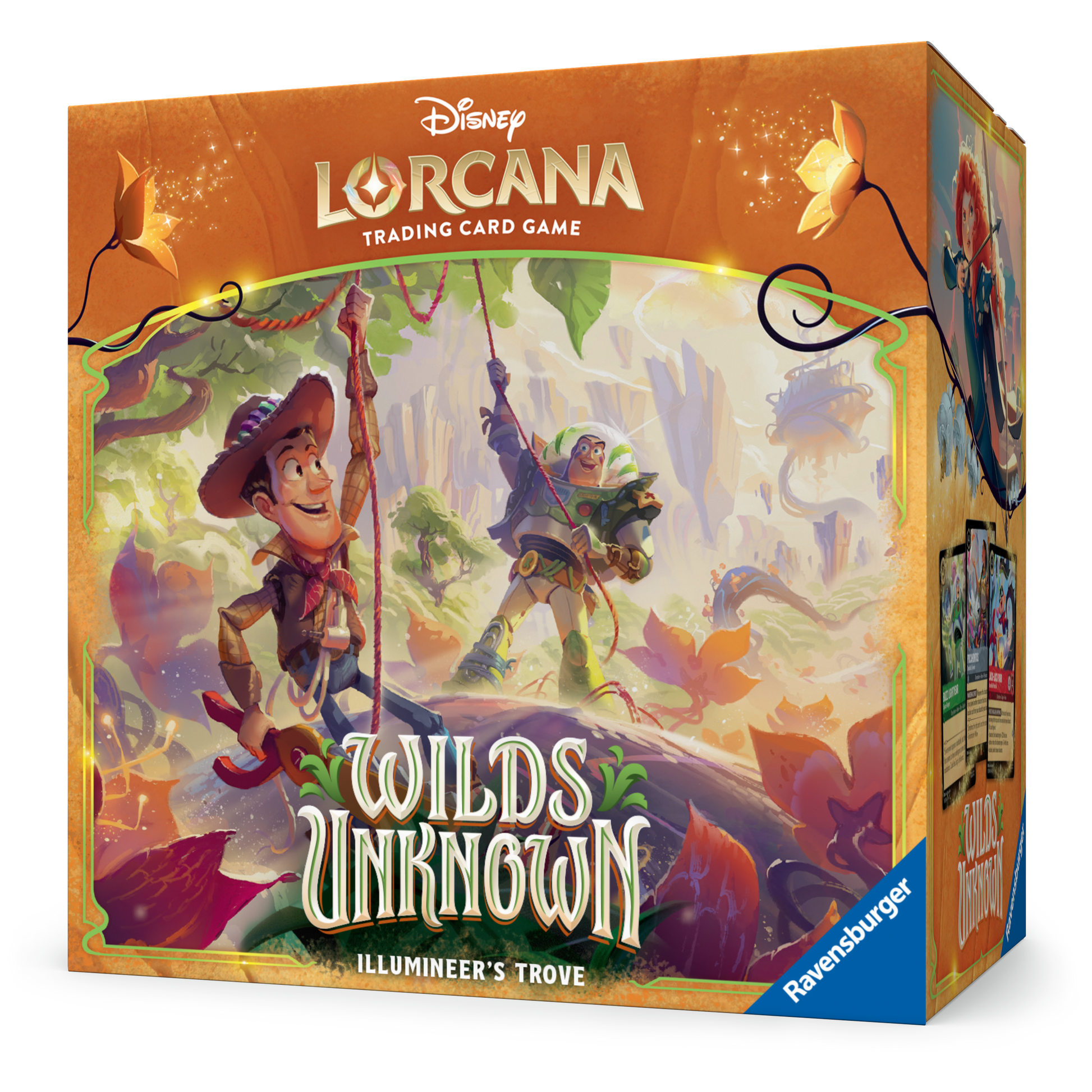 The ultimate treasure for both collectors and players, the Illumineer’s trove contains a full-art storage box with six card dividers to keep your Disney Lorcana TCG cards safe and organized by ink.
